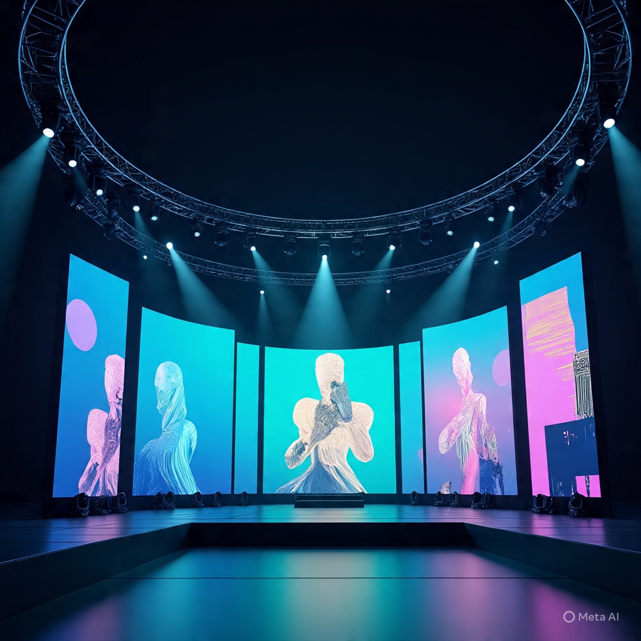 3D projection mapping is a cutting-edge technology. This concert stage design concept gives a completely different look to the concert. It creates a unique experience for the audience by using 3D effects, animation and colorful visuals. This style is being used more and more in concerts in 2026.